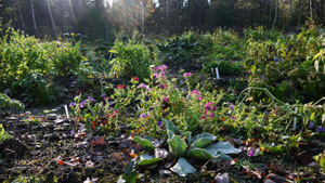 Québec Terre à Terre est situé au cœur des Appalaches. En dépit du fait qu`il y a plusieurs plantes sauvages comestibles ou qui ont des propriétés médicinales, nous avons fait de grands jardins. Le versant où nous nous sommes établis est orienté vers le sud-ouest. Nous pouvons faire nos jardins sans défricher totalement. Chacun est établi dans un microclimat différent qui détermine ce que nous allons planter.