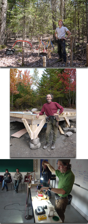 Sylvain Pilon offre depuis plus de dix ans aux éco-touristes l`opportunité de faire l`expérience de vivre autrement, plus près de la nature, avec moins et en voyant ce qu`ils peuvent faire pour faire une différence dans le monde, ici et maintenant. Un des points tournant dans sa vie, alors qu`il n`avait que dix ans, fut de voir un ruisseau clair comme du crystal, être détruit du jour au lendemain après que la cimenterie locale commença à déverser ses eaux usées dans celui-ci… Depuis, il a toujours cherché à trouver ce qu’il pouvait faire pour prévenir des choses semblables. Il a lancé une entreprise de récupération, a enseigné la planche à voile, a été propriétaire, avec sa femme Bonnie Kerr, une éco-destination; pendant quelques années. Depuis, il est un éco- jardinier-menuisier dans une petite municipalité rurale des Appalaches.